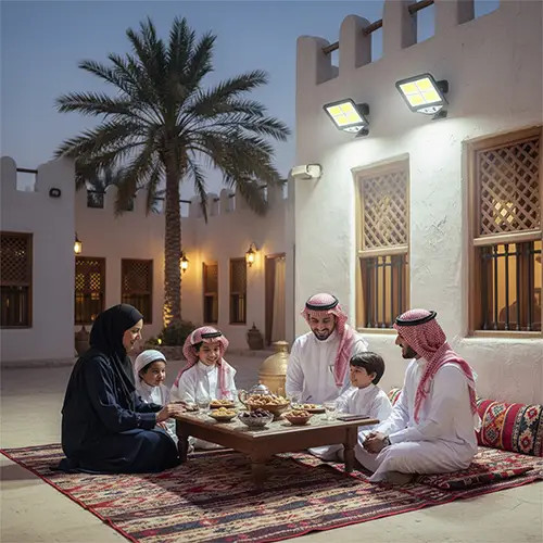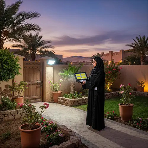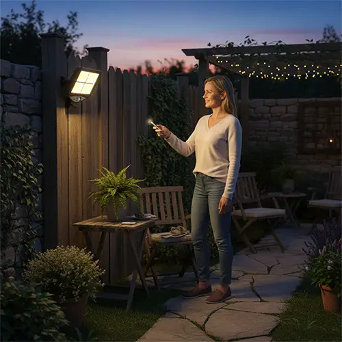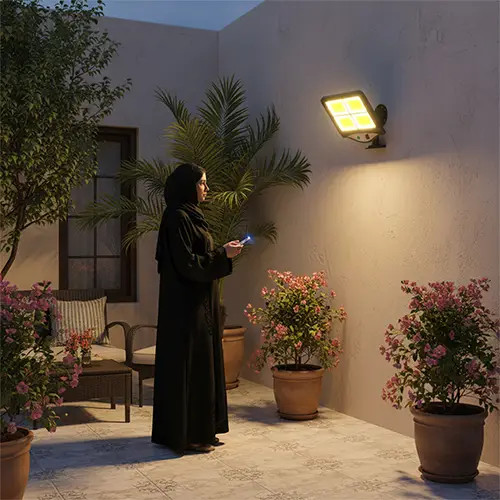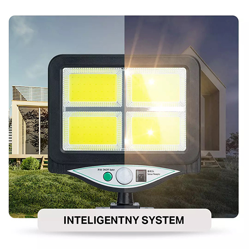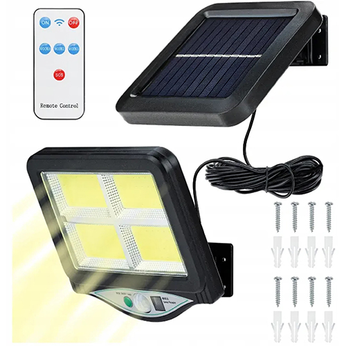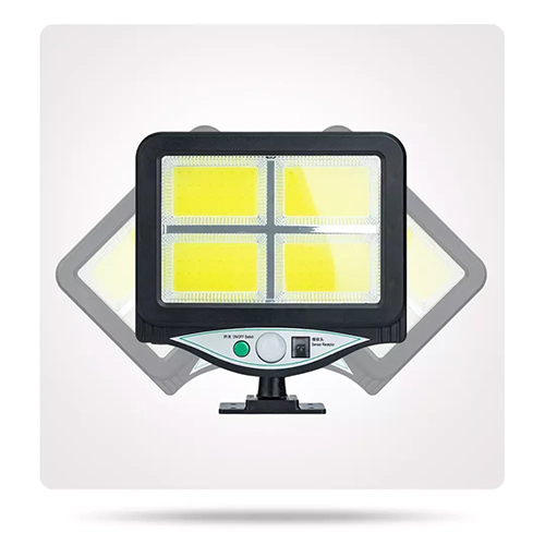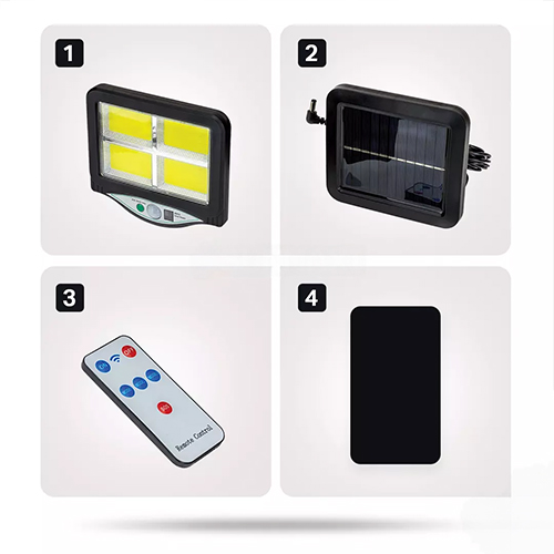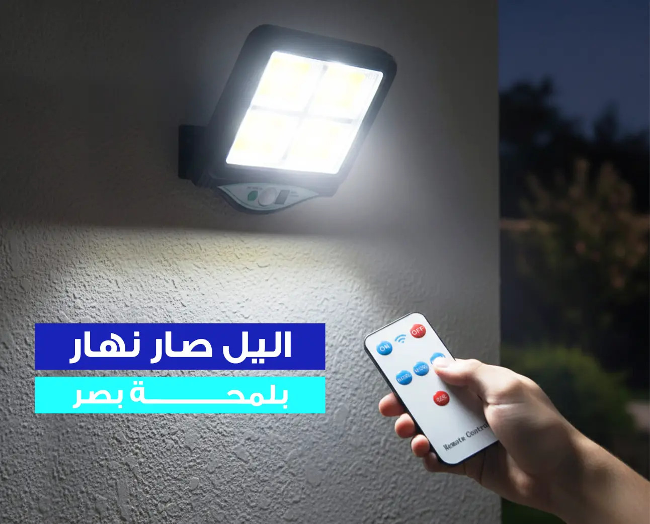 احصل على إضاءة قوية مع مصباح BK-128-4COB الشمسي المزود بمستشعر حركة وريموت، مثالي للحدائق والجراج ويوفّر شحناً شمسياً وكفاءة عالية.