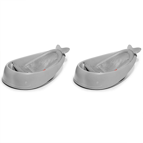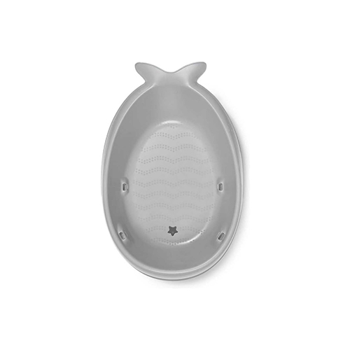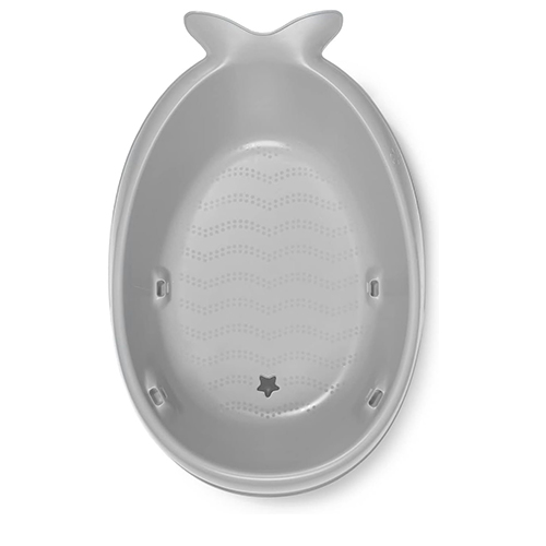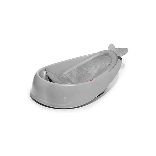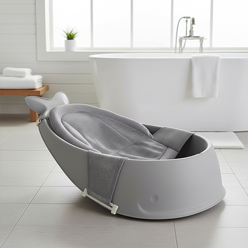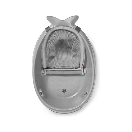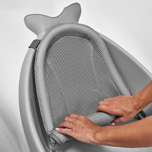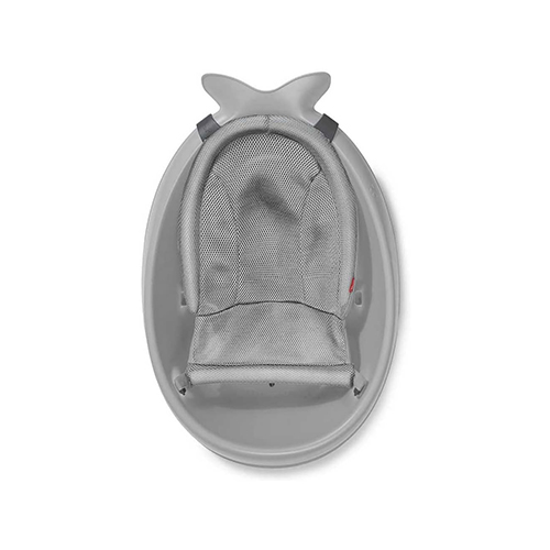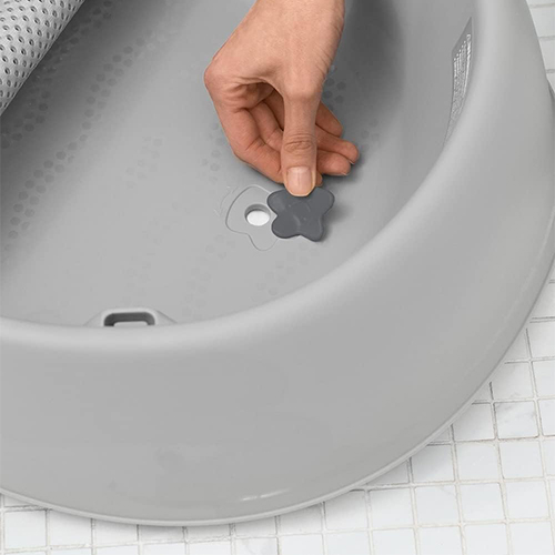 حوض استحمام للأطفال لون رمادي مع شبكة قماش شبكية غير قابل للانزلاق مع فتحة تصريف ويدعم وضعية الاستلقاء للأطفال حديثي الولادة
