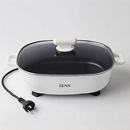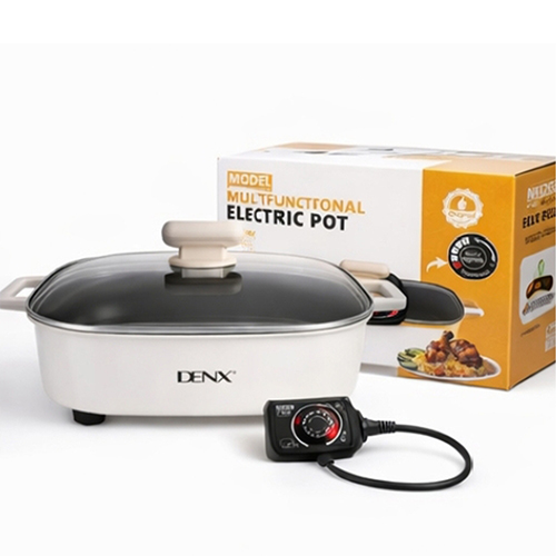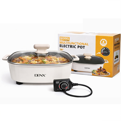 استمتعي بوجبات عائلية سريعة مع قدّر DENX DX3905 الكهربائي 6 لتر. قوة 1600 واط، طلاء غير لاصق، و5 مستويات حرارة. مثالي للقلي، السلق، والطهي بالبخار. اطلبه الآن!