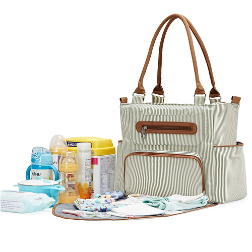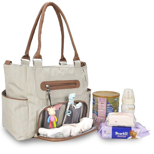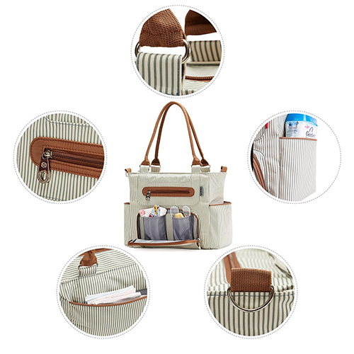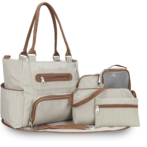 مجموعة حقائب الحفاضات مكونة من 6 قطع للأطفال مصنوعة من الأقمشة متعددة الطبقات مع مادة متينة ومقاومة للبقع