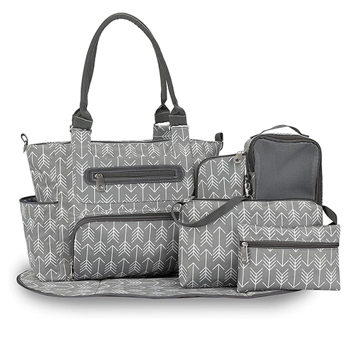 مجموعة متكاملة من شنط الحفاضات تضم 6 قطع لتلبية جميع احتياجاتك اليومية مع طفلك، مصممة لتوفير حلول عملية تساعدك على التنقل بسهولة وتنظيم أغراضك.