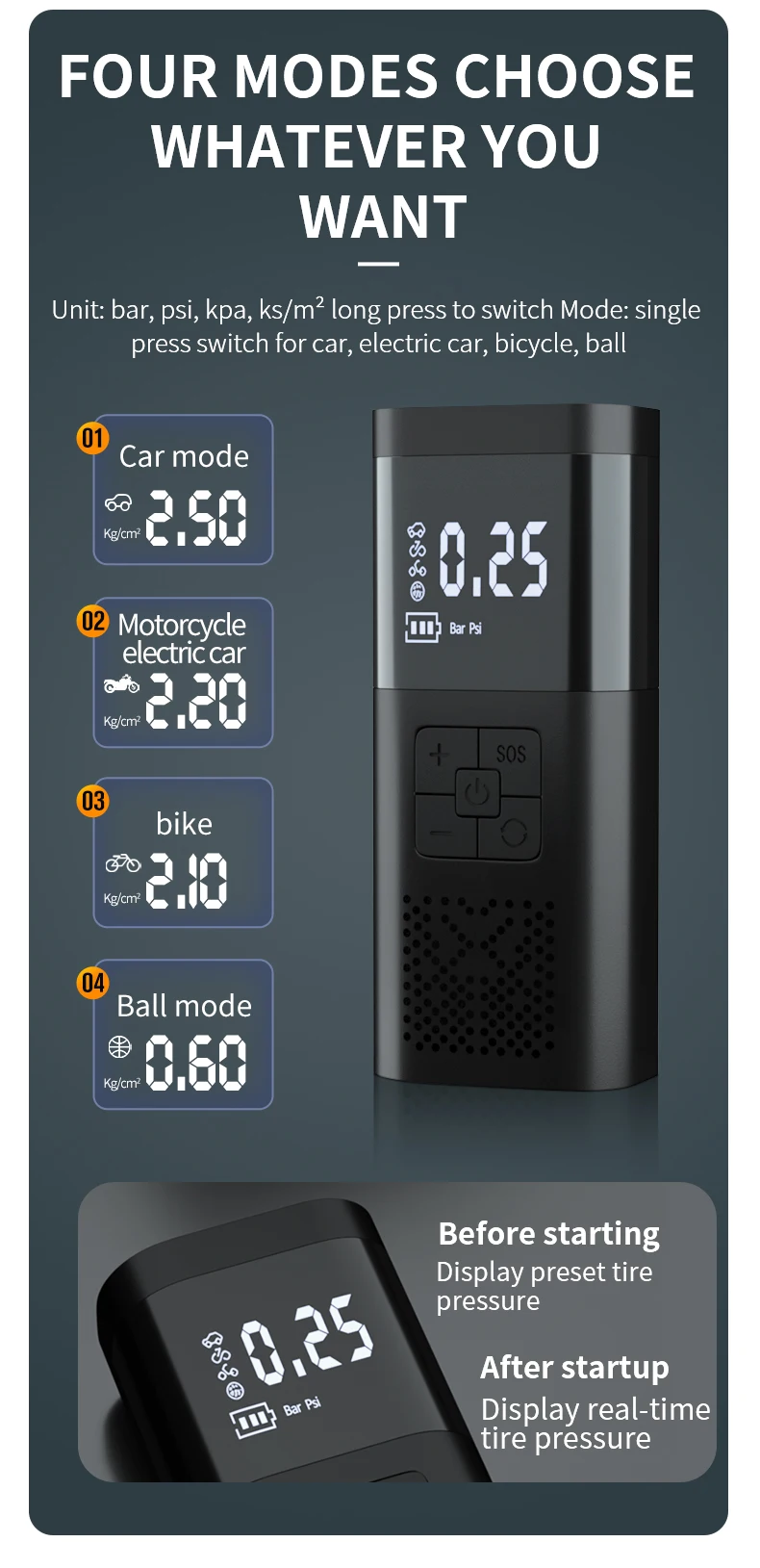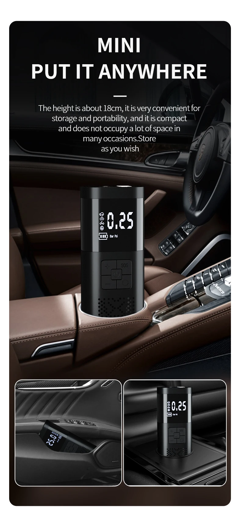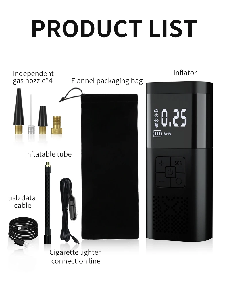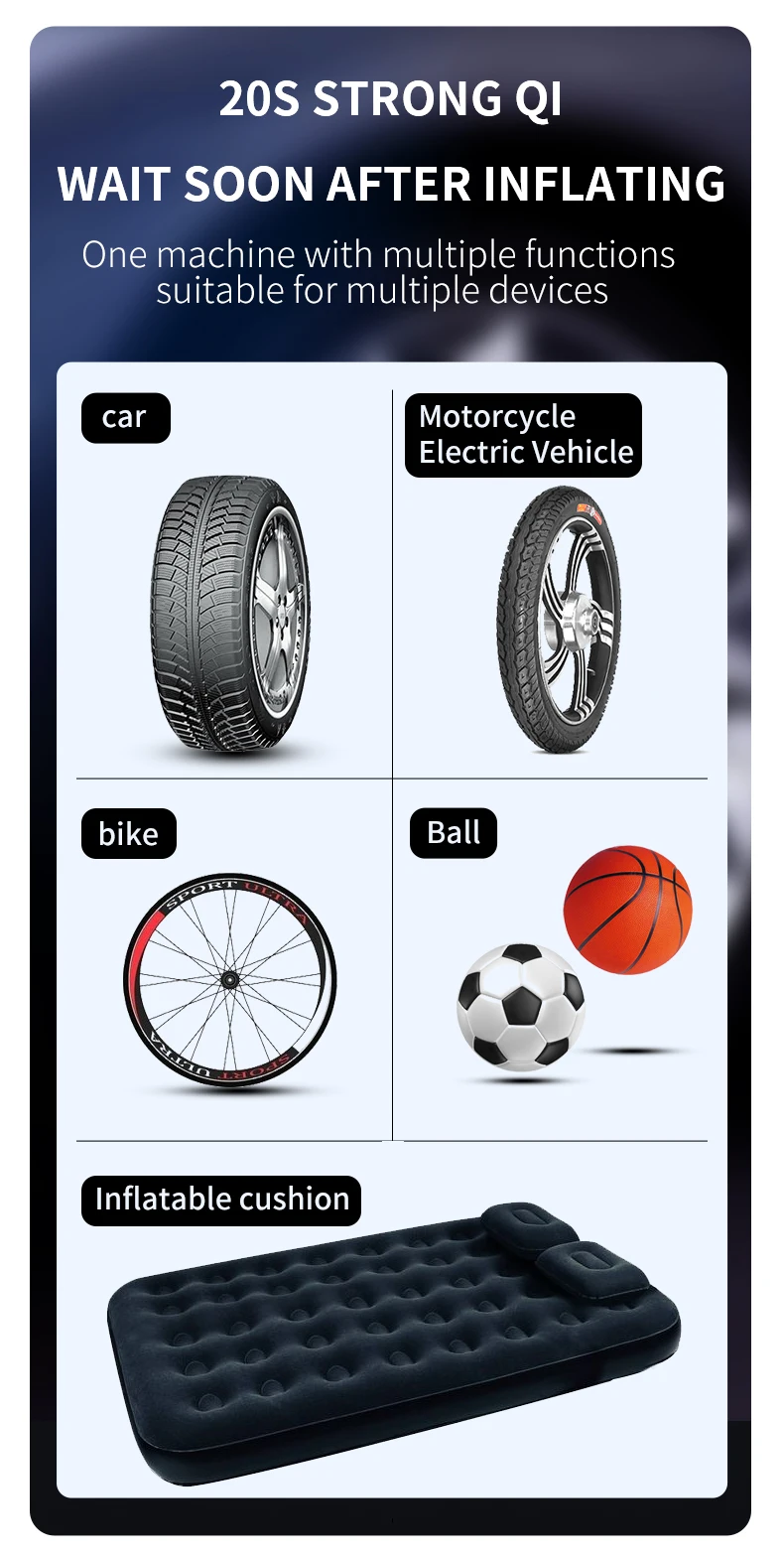 مضخة الإطارات الكهربائية لإطارات السيارات والدراجات والدراجات النارية والكرة مع شاشة LCD مزدوجة و تضخم سريع 150 PSI