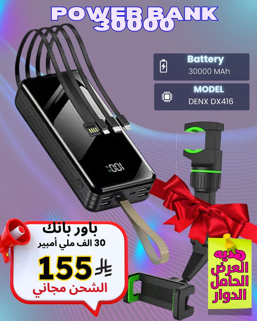 🚀 باور بانك DENX DX416: قوة 30000 ملي أمبير لا تتوقف!