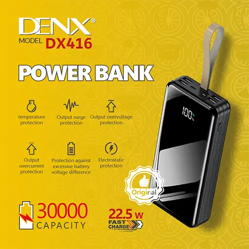 باور بنك DENX DX416 هو الخيار الأمثل لكل من يبحث عن قوة، أمان، وسرعة في تصميم واحد يدوم طويلاً.