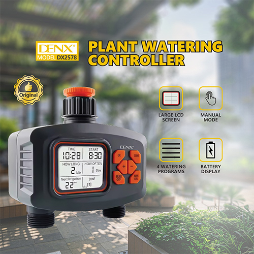 وحدة تحكم ري النباتات DENX DX2578 مع شاشة LCD كبيرة، أربعة برامج مرنة، وتوصيلات سريعة