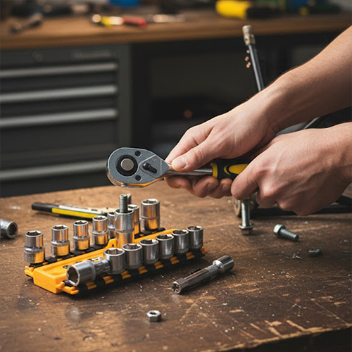 - النوع: طقم مفاتيح ربط وسوكيتات شامل، مُقدم في علبة بلاستيكية متينة.
