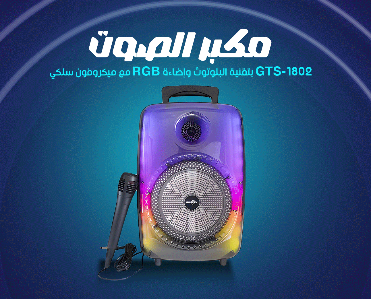 مكبر الصوت بتقنية البلوتوث وإضاءة RGB مع ميكروفون سلكي