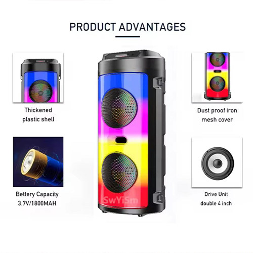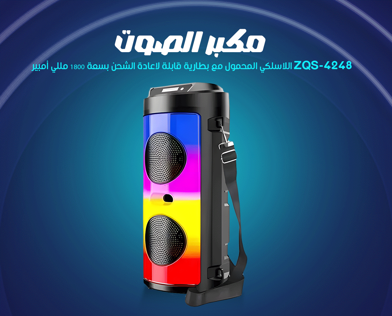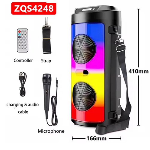 مكبر صوت ZQS-4248 اللاسلكي المحمول مع بطارية قابلة لاعادة الشحن بسعة 1800 مللي أمبير