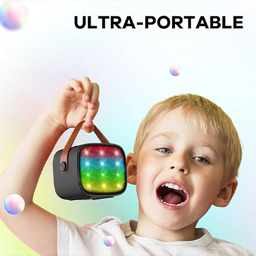 استمتع بالغناء مع مكبر صوت بلوتوث K1L وميكروفونين لاسلكيين، صوت عالي الجودة، تأثيرات LED، وتشغيل طويل للبطارية.
