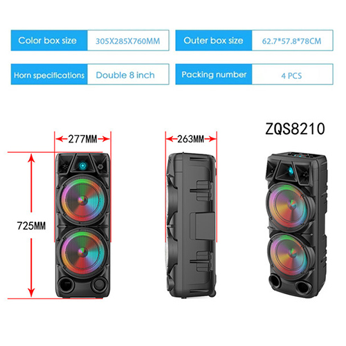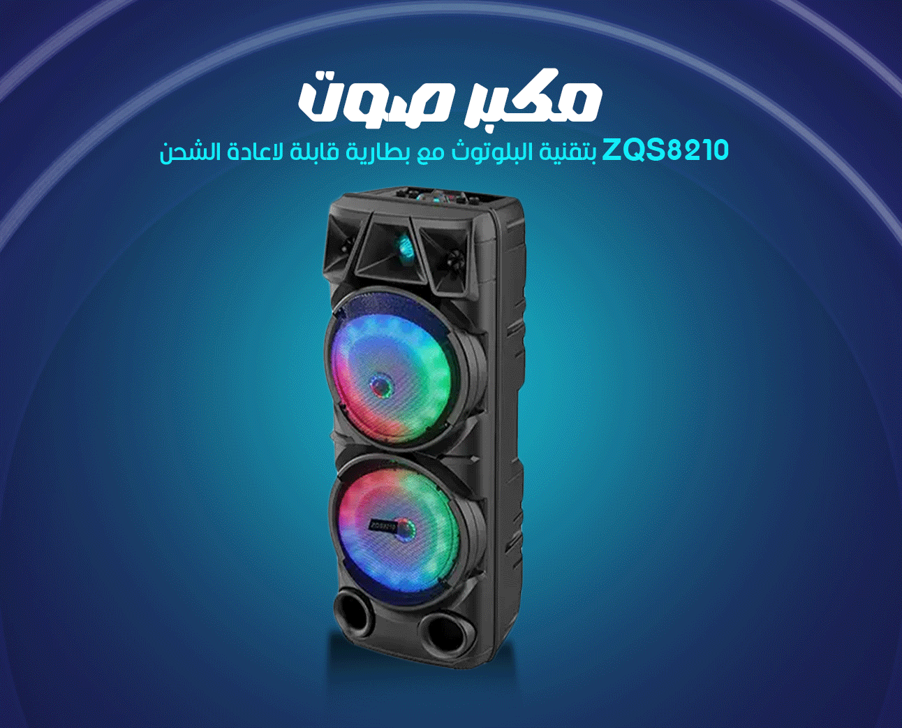 أضف لمسة من الإثارة إلى حفلاتك مع مكبر الصوت ZQS8210 . يتميز بصوت استريو قوي وإضاءة RGB نابضة بالحياة، مما يخلق أجواء مذهلة. بفضل تقنية بلوتوث 5.0، بطارية تدوم طويلاً، ميكروفون لاسلكي وجهاز تحكم عن بعد، يمكنك الاستمتاع بالموسيقى والغناء أينما كنت.