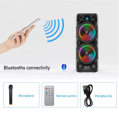 مكبر صوت بتقنية البلوتوث مع بطارية قابلة لاعادة الشحن واضاءة RGB ، يدعم TWS ، FM ، USB، مع ميكروفون وجهاز تحكم عن بعد