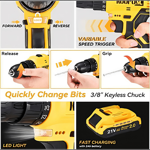 اكتشف طقم مثقاب لاسلكي DENX DX3329 ببطارية ليثيوم 21 فولت، سرعة متغيرة حتى 1450 دورة، مع ملحقات متكاملة لأعمال الحفر والصيانة.