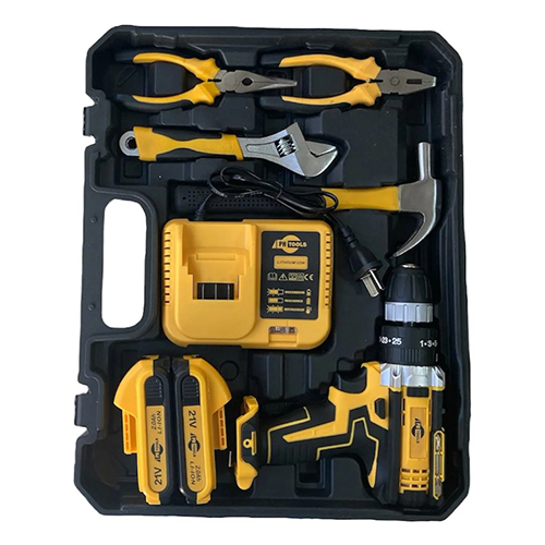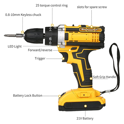 طقم مثقاب لاسلكي DENX DX3329 ببطارية ليثيوم 21 فولت وسرعة متغيرة