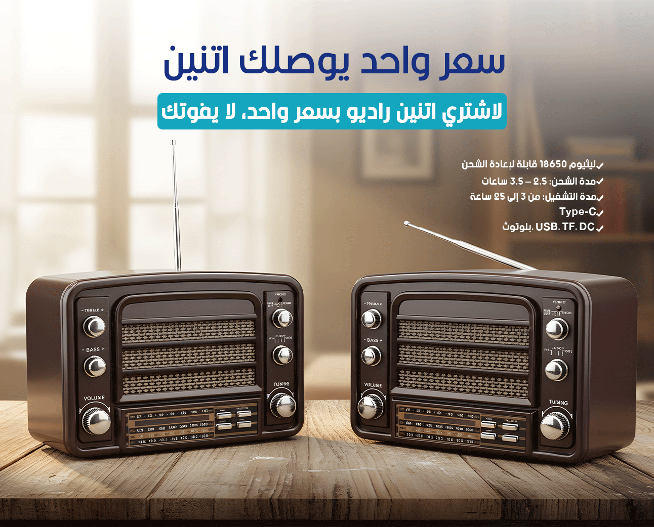 راديو DENX DX2438 المطور. صوت صافي Hi-Fi، يدعم البلوتوث وشحن Type-C سريع. مثالي للمجالس والرحلات