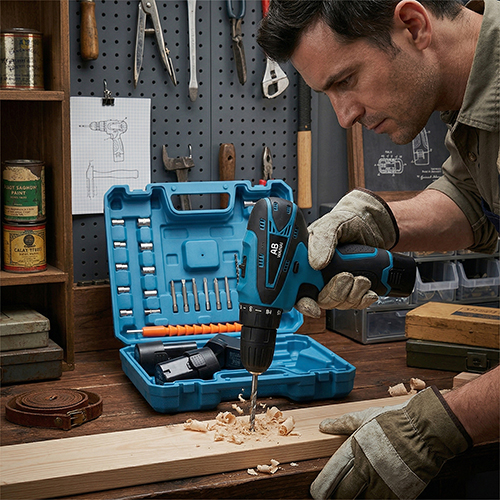 اكتشف دريل كهربائي AB WAKEEL ببطارية 12V مع عدة ملحقات، يمنحك أداء قوي، بطارية طويلة، واستخدام متعدد بسهولة وأمان.