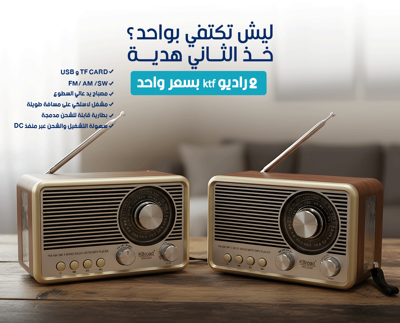 - راديو FM/ AM /SW مع إمكانية تشغيل موسيقى USB و TF CARD.