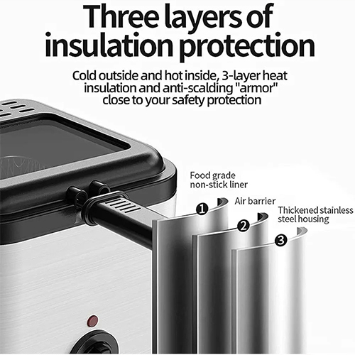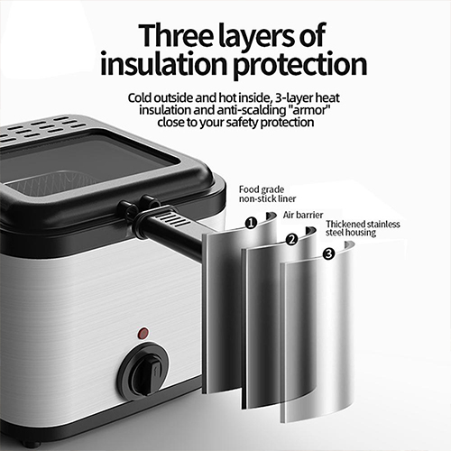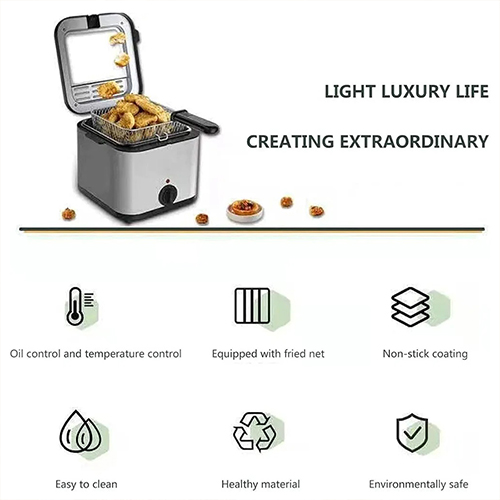 مقلاة عميقة DENX DX4002 ستيل 2.5 لتر، 1000 واط لنتائج احترافية