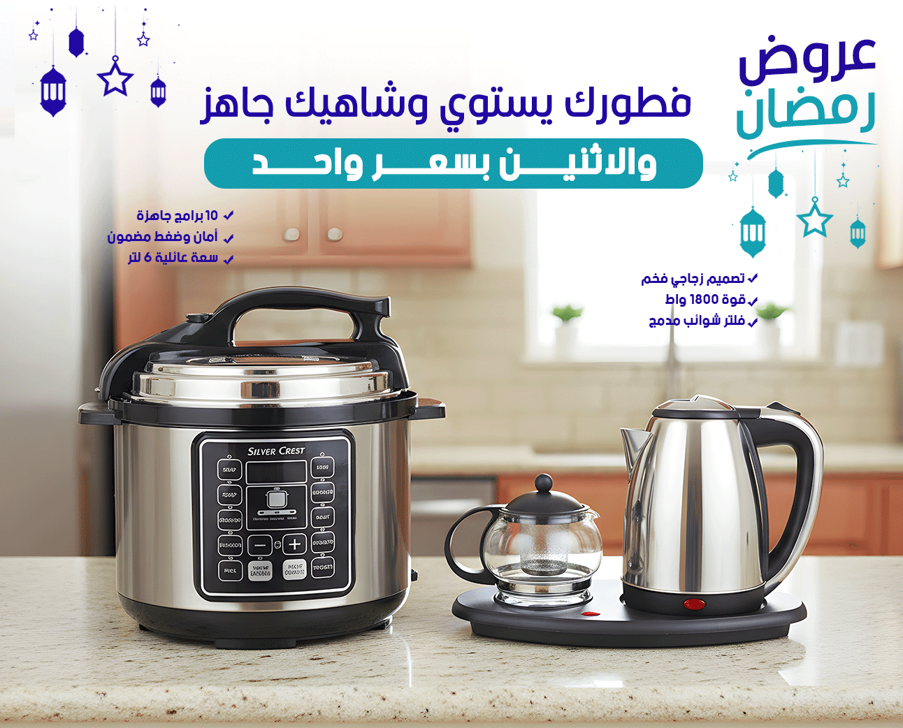 غلاية شاي 2×1 Silver Crest SC-100 بسعة 2.8 لتر و1800 واط ومزود فلتر